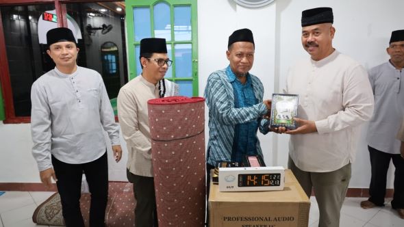 Bupati Kukar ini pada kunjungannya tersebut menyerahkan bantuan Pemkab Kukar yaitu pengeras suara, mukena, sarung, ambal sajadah, mushaf Yaasin, buku Iqro, serta jam digital. Juga bantuan paket sembako dari Edi secara pribadi, serta dari BAZNAS Kukar.
