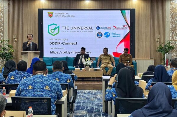 “Dengan TTE, proses tanda tangan menjadi lebih cepat, aman, dan yang tak kalah penting, menghemat anggaran ATK karena berkurangnya penggunaan kertas,” ujar Aji Syarif saat membuka kegiatan di Aula Ki Hajar Dewantara, Dinas Pendidikan dan Kebudayaan Kota Samarinda.