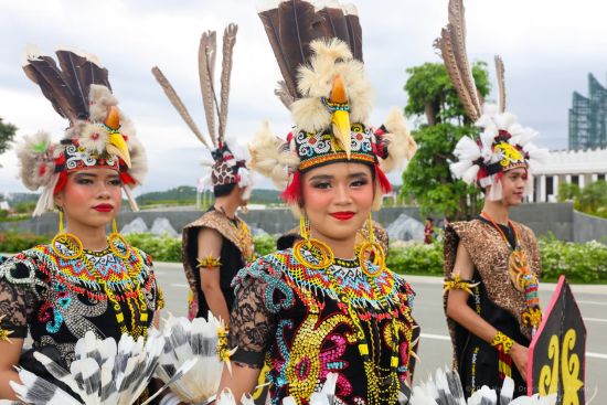 Tarian Datun Esperos yang diseragamkan dengan pakaian adat Dayak, Kalimantan Timur menjadi awal mula keelokan budaya Nusantara yang dipersembahkan. Tak ketinggalan, narasi keberagaman dan kekayaan Indonesia pun mengiringi setiap lenggok budaya oleh para peserta.