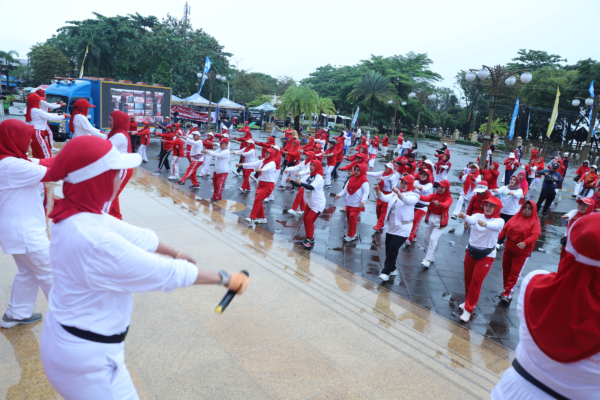 Tepat pukul 08.00 Wita, alunan musik energik mengiringi gerakan SJS yang dipandu instruktur profesional. Meskipun cuaca sempat gerimis, antusiasme peserta tetap tinggi, mengikuti setiap gerakan yang dirancang untuk meningkatkan kebugaran dan kesehatan jantung.