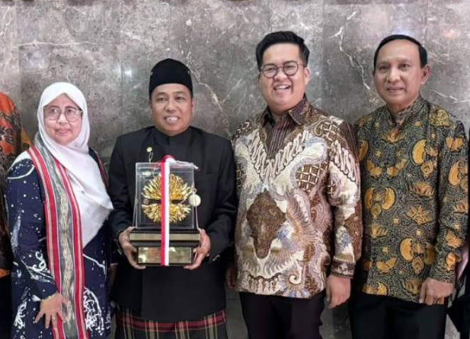 Kunker Menteri Lingkungan Hidup, dr Hanif Faisol ditandai penyerahan cenderamata dari Bupati Kukar Kepada Menteri Lingkungan Hidup, serah terima bantuan PPM Tahun 2025 dari SKK Migas-PT Pertamina Hulu Mahakam berupa lampu penerangan jalan umum LPJU Tenaga Surya kepada Pokdarwis Desa Pela.