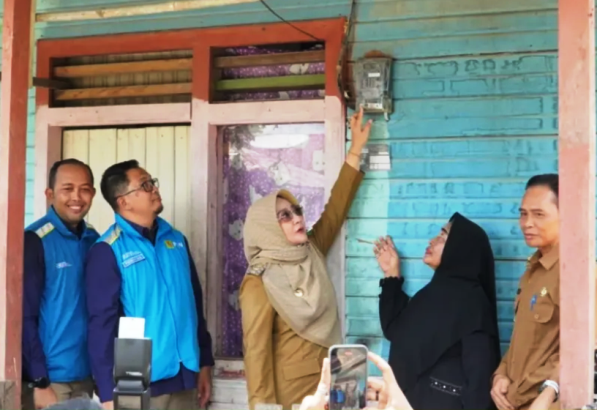 Peresmian ditandai dengan penekanan meteran kWh di salah satu rumah keluarga prasejahtera (Foto: Ig pemkabberau).