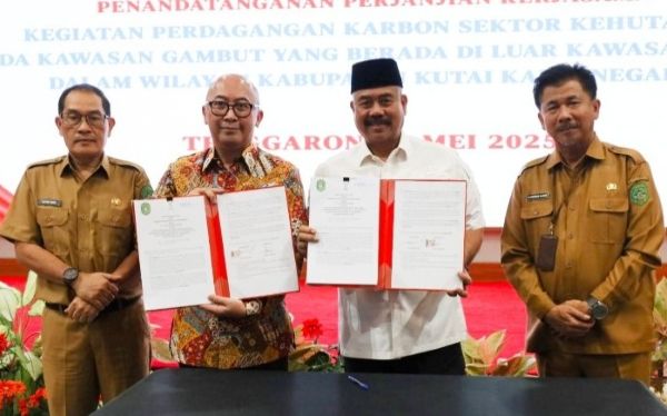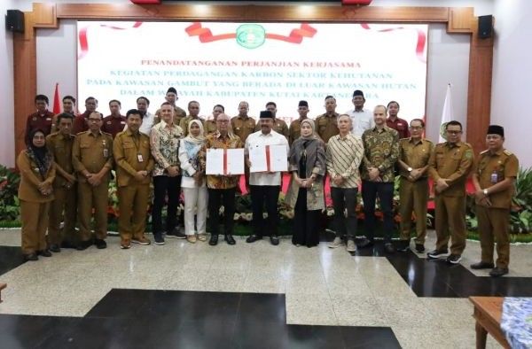vivaborneo.id/ — Pemerintah Kabupaten Kutai Kartanegara (Pemkab Kukar) melakukan penandatanganan perjanjian kerjasama kegiatan perdagangan karbon sektor kehutanan pada kawasan gambut dengan PT Tirta Carbon Indonesia. Penandatangan kerjasama tersebut dilakukan oleh Bupati Kukar Edi Damansyah dan Direktur Utama PT Tirta Carbon Indonesia,  Wisnu Tjandra, yang berlangsung di Pendopo Odah Etam Tenggarong, Selasa (6/5/2025).
