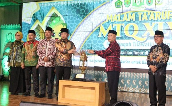 Penyerahan piala bergilir untuk lomba baca tulis al qur’an se Kaltim itu, diserahkan pada malam Ta’aruf yang juga dihadiri Gubernur Kaltim Rudy Mas’ud dan Forkopimda Kaltim lainnya.