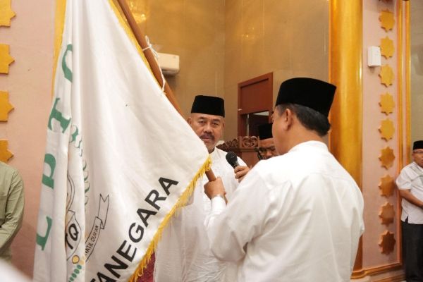 Edi Damansyah, menyerahkan Bendera Pataka LPTQ Kukar kepada Ketua Umum Dr. Sunggono untuk mengembangkan/memajukan tilawatil qur’an di Kukar.