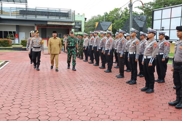 Bupati Kukar Edi Damansyah didampingi Kapolres Kukar AKBP Dody Surya Putra dan Dandim 0906/Kukar Letkol Czi Damai Setiawan memimpin apel pasukan Operasi Ketupat Mahakam 2025 mengantisipasi perayaan Idul Fitri..